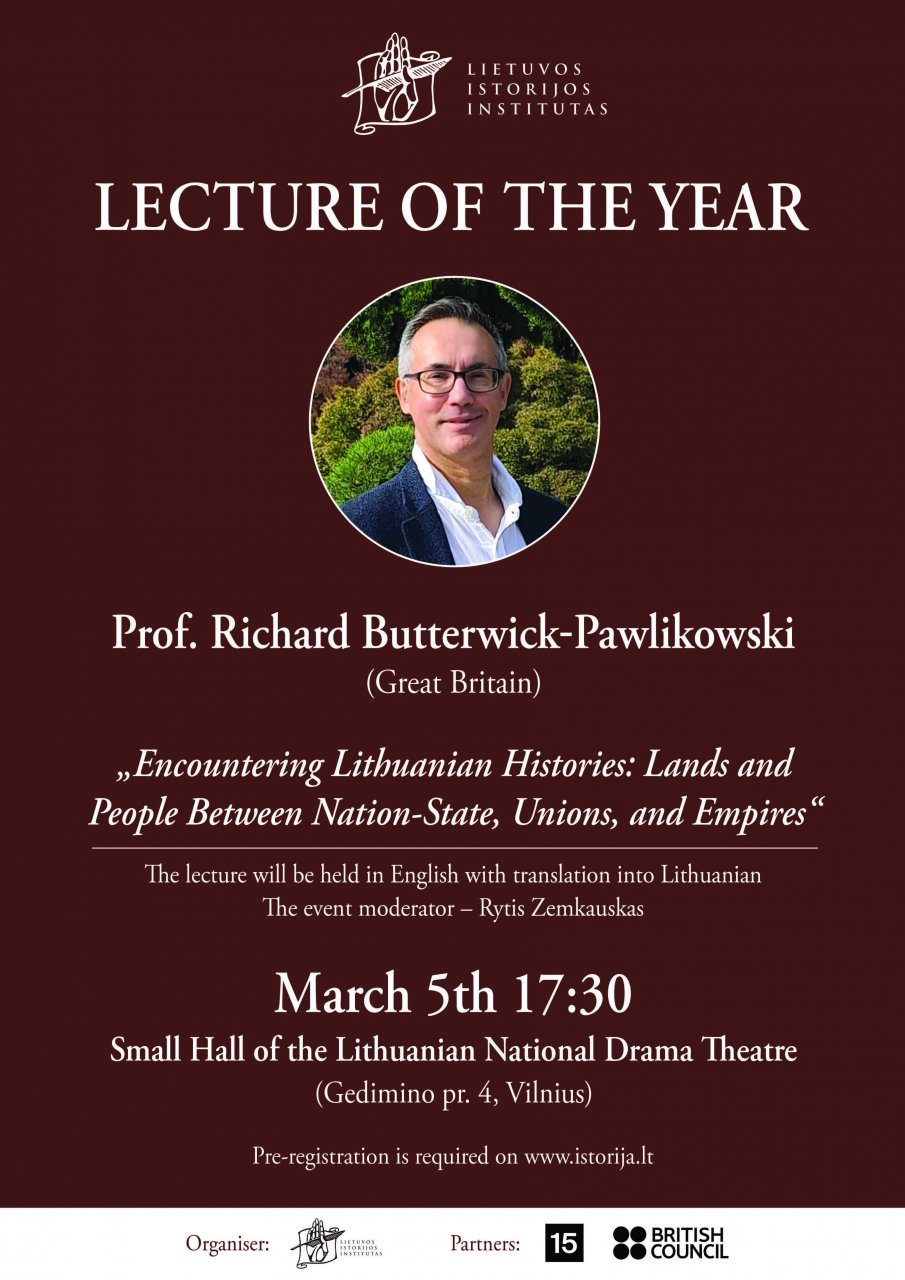 The Lithuanian Institute of History cordially invites to the Lecture of the Year. Professor Richard Butterwick-Pawlikowski (Great Britain) will give a lecture "Encountering Lithuanian Histories: Lands and People between Nation-state, Unions, and Empires" in Vilnius.