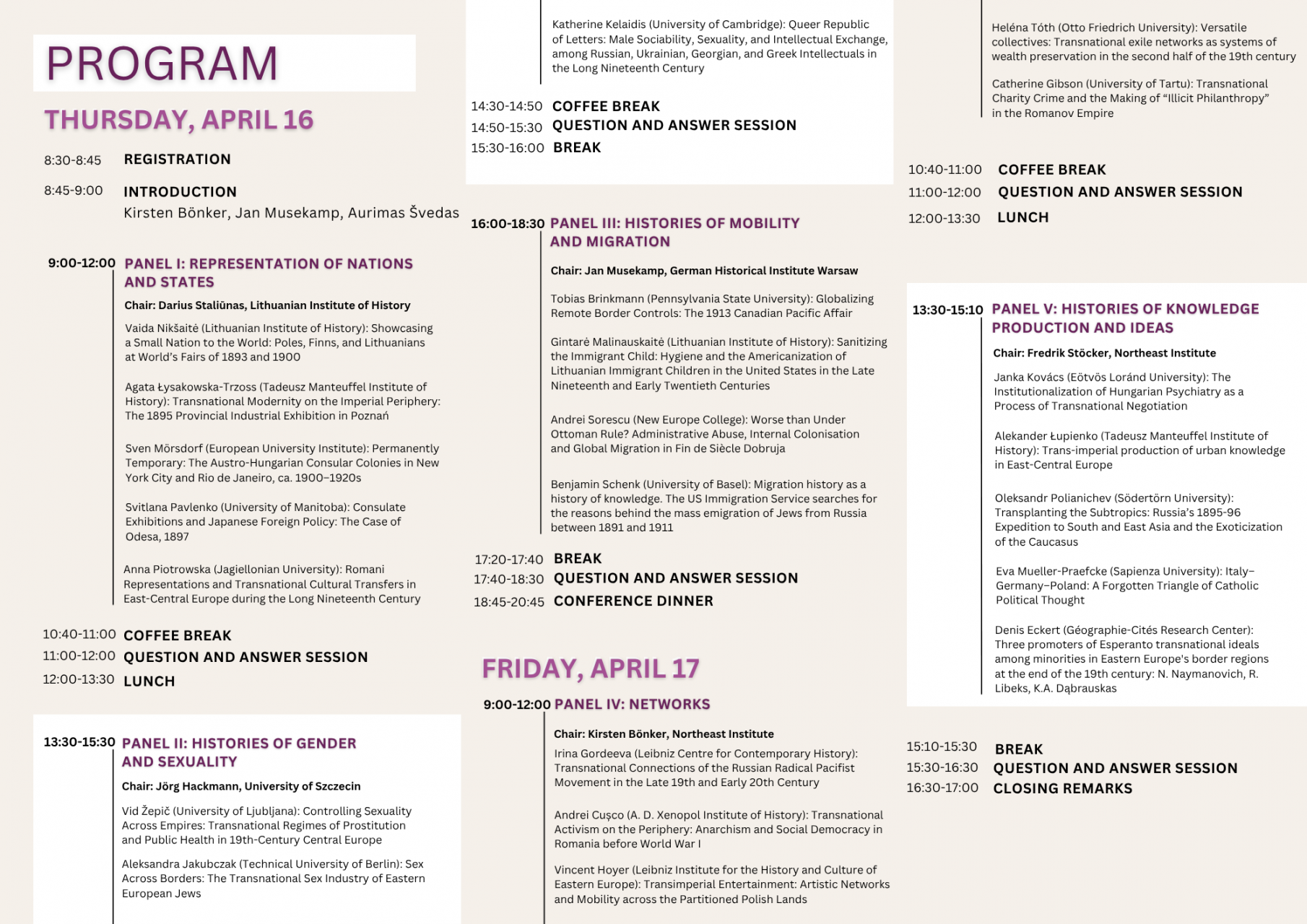 2026 m. balandžio 16-17 d. Vilniuje įvyks tarptautinė mokslinė konferencija „Transnational approaches to the long 19th century history in East-Central Europe“.